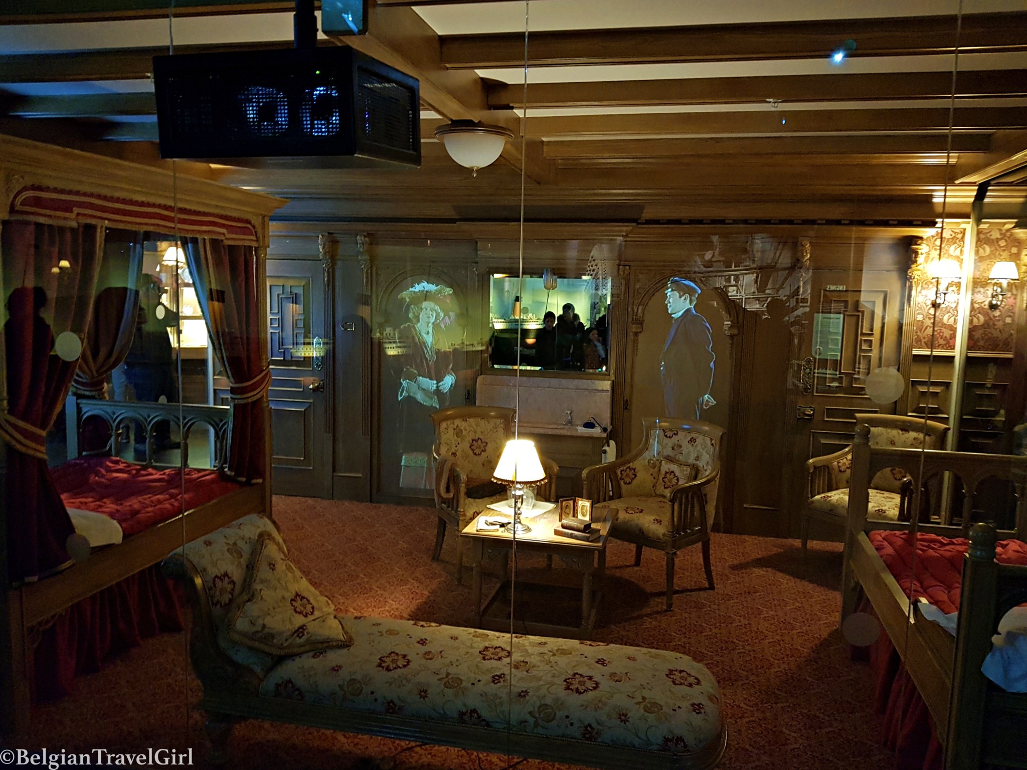 La visite évolue avec la reconstitution des cabines, l’explication des différences entre chaque classe sur le bateau (différences par rapport aux tissus choisis, à la vaisselle utilisée etc), les escales prévues lors du voyage d’inauguration…