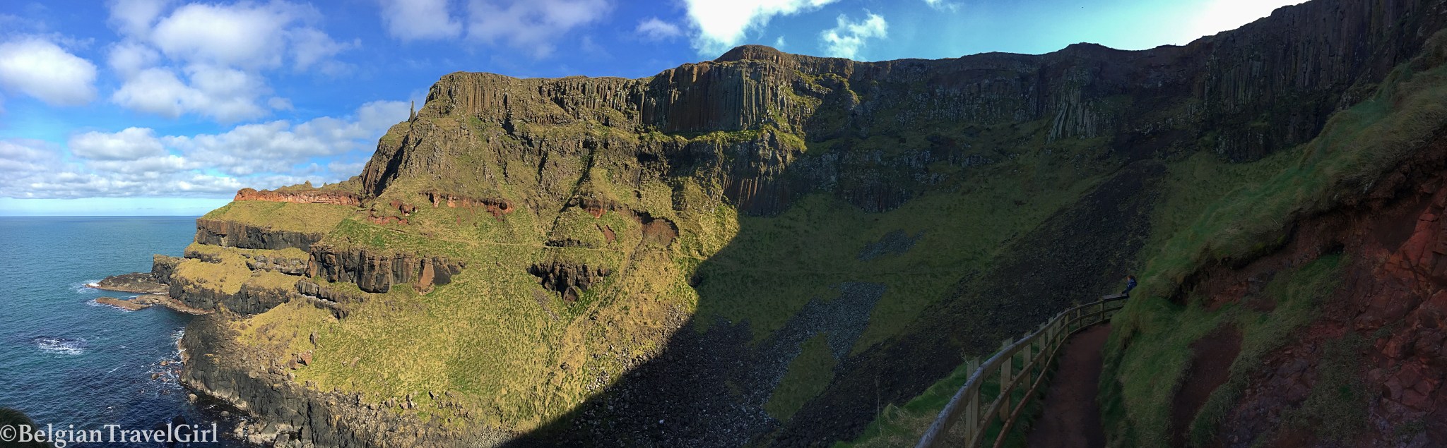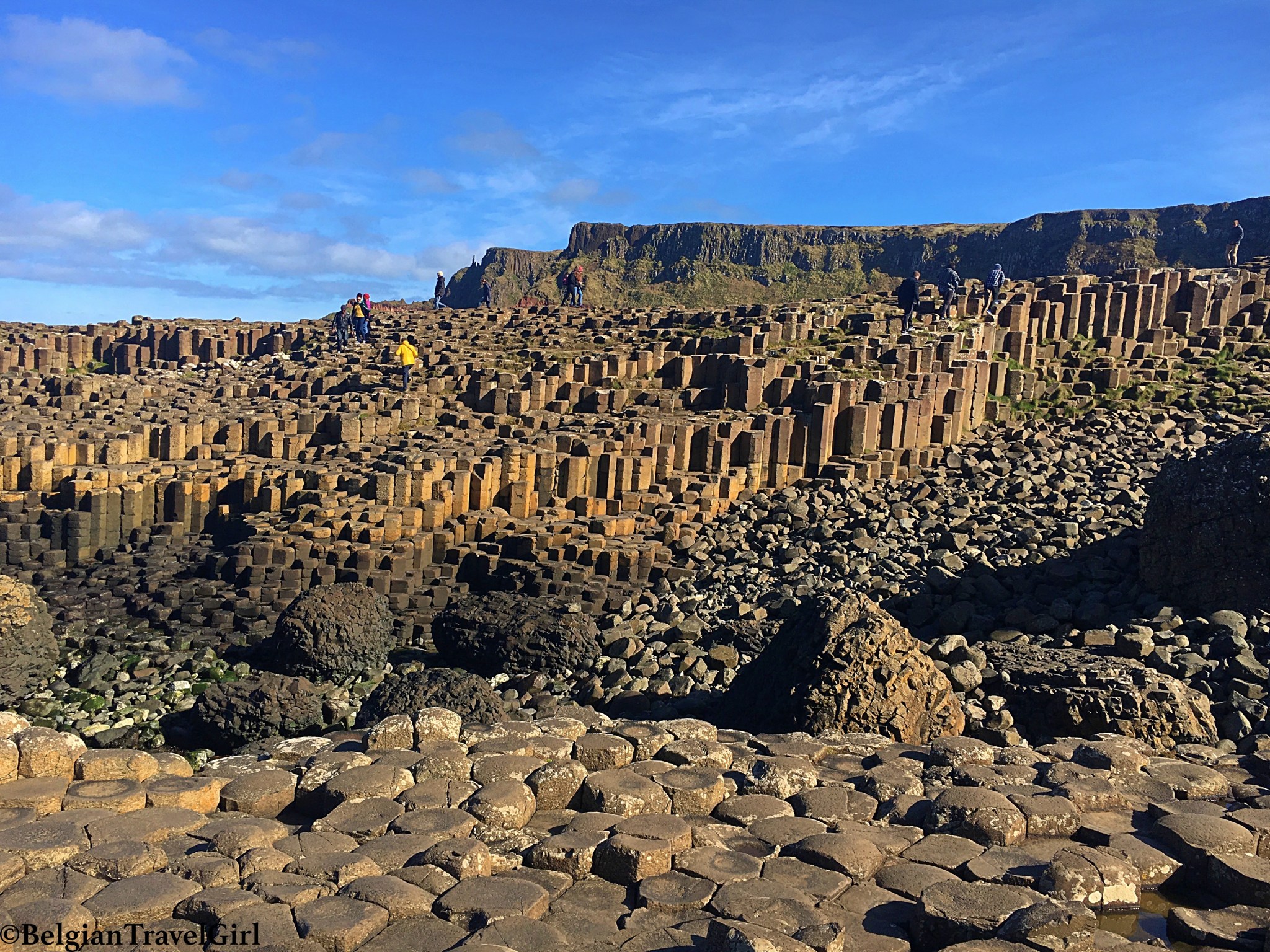 J’avais trouvé une auberge à 5 min à pied de la Chaussée des Géants pour démarrer ma dernière journée dès que possible. Forcément, après en avoir pris plein la vue la veille, je ne m’attendais vraiment pas à un endroit encore plus magique, classé à l’UNESCO. Il s’agit d’une formation naturelle de 40.000 colonnes de roche volcanique formées il y a 40 millions d’années par une éruption. On peut y admirer la différence de couleurs de ces colonnes, qui peuvent mesurer jusqu’à 12 mètres :
