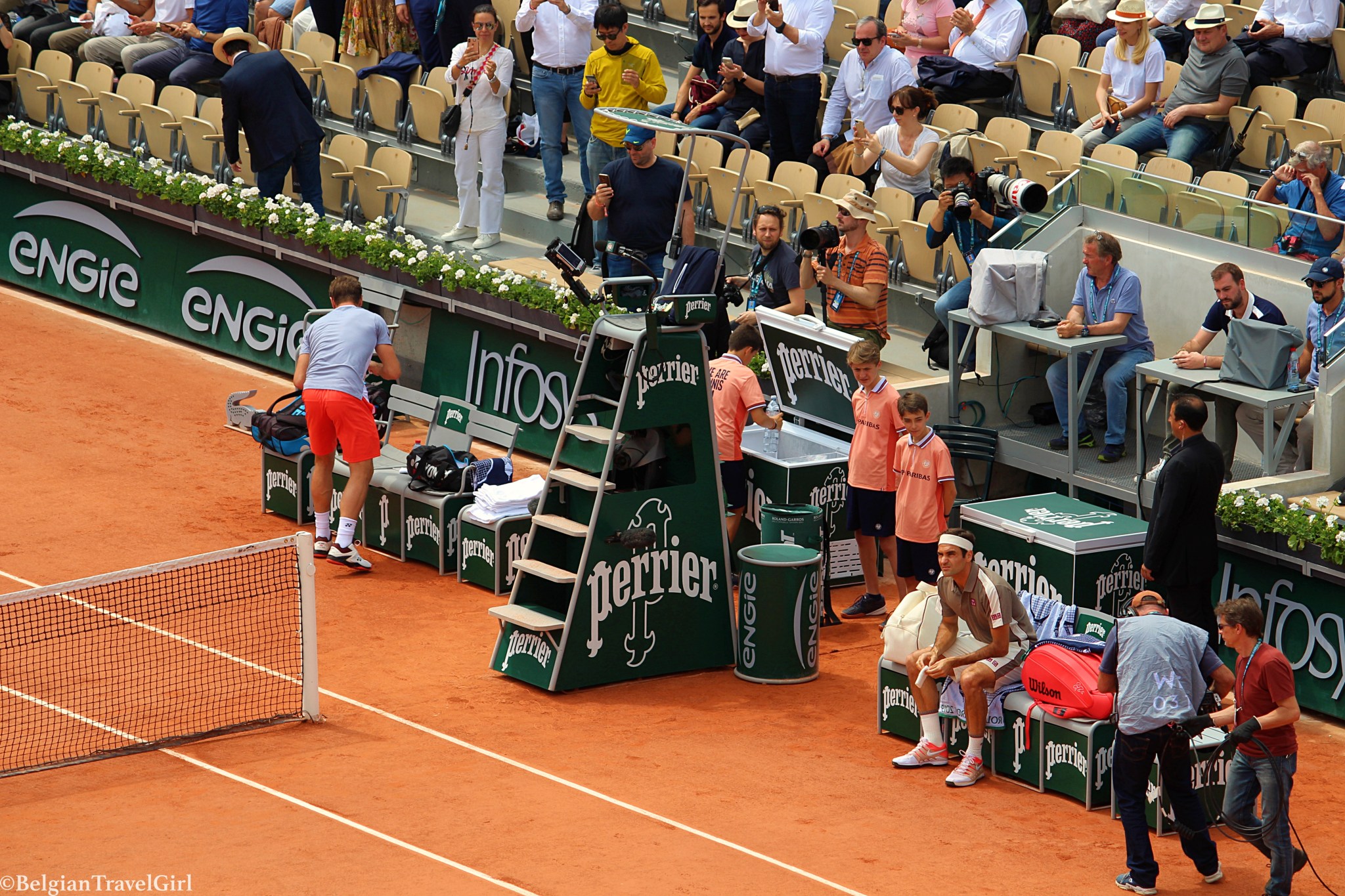 Le bruit avec lequel la raquette claque la balle est vraiment très impressionnant, les déplacements des joueurs, le silence avant le service… Malgré une interruption d’une petite heure à cause de la pluie, j’étais comme une enfant dans le Court Suzanne Lenglen ! Ce match était incroyable !
