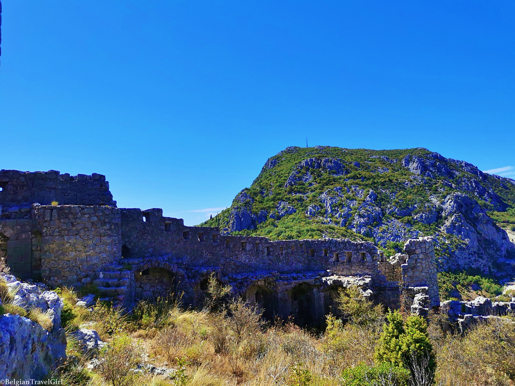 29 km au sud de Budva, c’est un must à absolument visiter si vous préférez les coins non touristiques ! Je ne vous cache pas qu’on a galéré à trouver les ruines du Haj-Nehaj, mais ça en valait la peine ! Heureusement, nous avions téléchargé la carte du Monténégro au préalable via l’application Mapsme 🙂 ! Une fois arrivés proche de la destination il suffit de vous garer en contrebas du village et d’emprunter le sentier qui s’enfonce dans la forêt. Après 20-30 minutes de marche plutôt abrupte et en pleine la nature, nous sommes arrivés en haut de a colline et avons beaucoup apprécié d’avoir les ruines pour nous tous seuls 😀