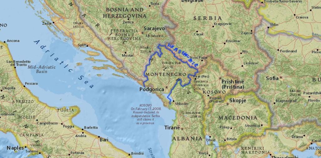Le Monténégro (Monte Negro qui signifie « Montagne noire » en rapport aux forêts du nord) se trouve dans les Balkans en face de l’Italie et est entouré de la Croatie, la Bosnie-Herzégovine, la Serbie, le Kosovo et l’Albanie. C’est un tout petit pays de 609.000 habitants qui fait la moitié de la superficie de la Belgique (c’est pour dire :D) et dont la capitale est Podgorica. On y parle essentiellement le monténégrin et le serbe.