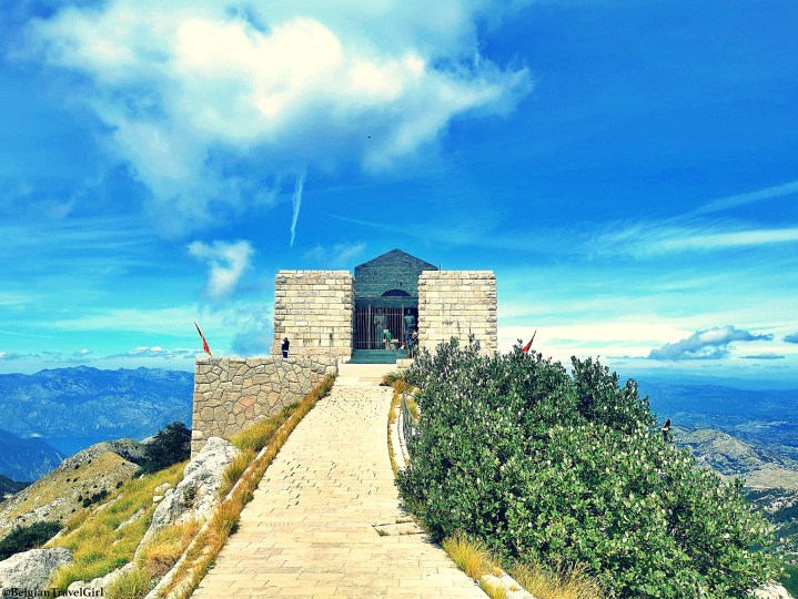 Nous sommes d’abord arrivés par l’unique route qui mène au mausolée de Njegos, poète et héro national du Monténégro. Il vous suffit de passer le contrôle et payer 2 EUR par personne pour achever les 3 derniers km en voiture, se garer à 1657 m d’altitude et ensuite monter les 461 marches pour arriver en haut du mausolée.