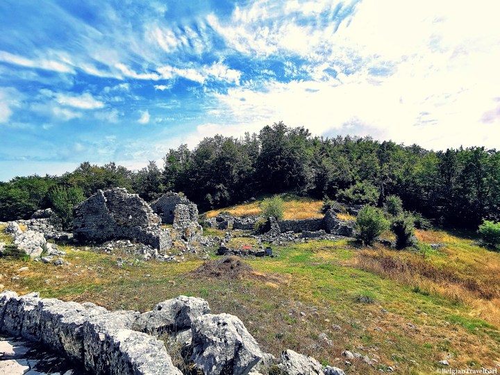 Du coup nous sommes partis à pied sans savoir vraiment où aller. Nous avons marché environ 4,5 km (100m de dénivelée) avant d’arriver à d’anciennes ruines, quelques maisons et un monument en pyramide.