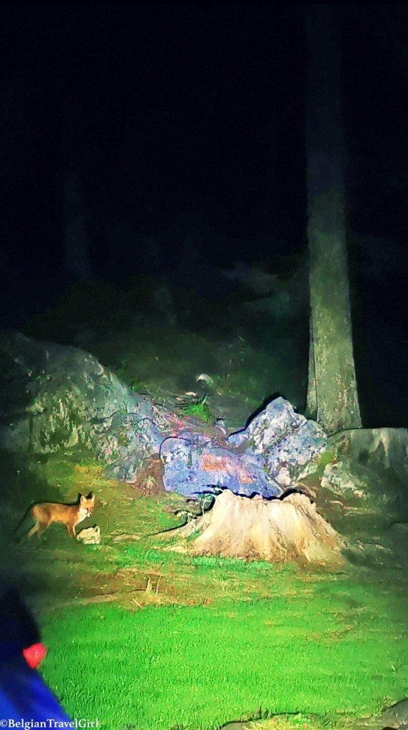 On décide de prendre les lampes frontales et de regarder hors de la tente : et on dit bonjour au RENARD ! Il cherchait uniquement de la nourriture heureusement ! Un deuxième renard arrive, on l’entend boire l’eau du lac juste à côté de la tente… On se dit que la nuit va être difficile ! Plus de peur que de mal au final 😅😅
