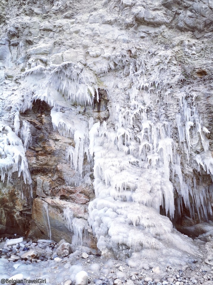 Etant donné le week-end glacial que nous avons eu à la côte, nous avons fait un petit tour du côté de Wimereux et du Cap Blanc-Nez pour y admirer les falaises remplies de stalagtites, un phénomène très rare dans la région :