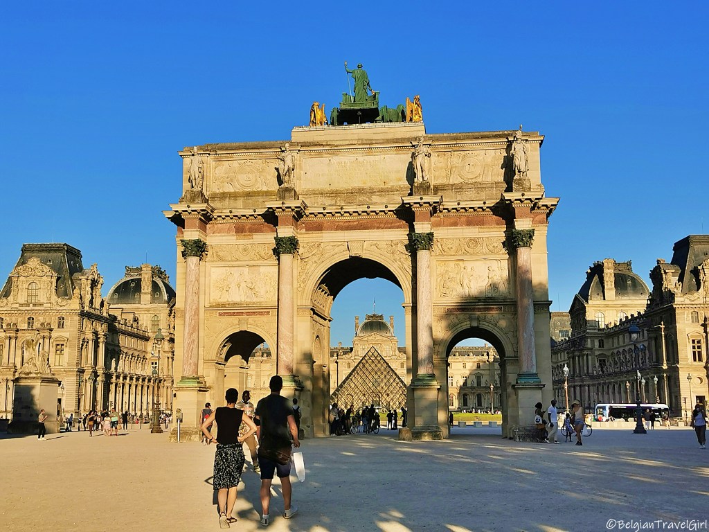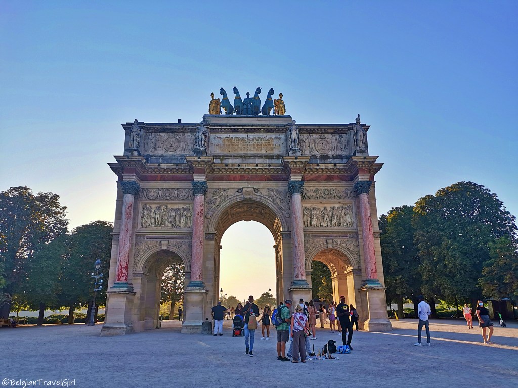 Cet arc de triomphe a été inauguré le 15 août 1808 lors de la victoire de Napoléon Bonaparte à Austerlitz et est situé place du Carrousel (d’où son nom), juste à côté du musée du Louvre.