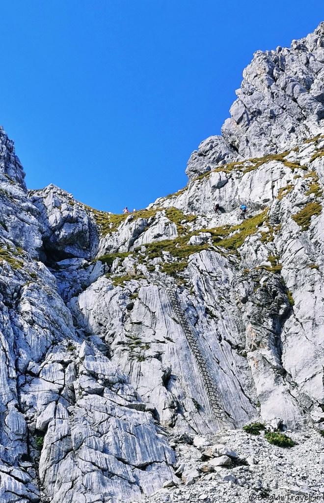 Une fois arrivés en haut du funiculaire, c’est parti pour une rando de 5h ! Même si le parcours peut se faire dans les deux sens, je vous conseille fortement de partir à droite et de suivre les panneaux « ferrata« , assez visibles, car la montée est très technique et j’ai croisé plusieurs personnes qui faisaient le chemin dans l’autre sens et qui galèraient pour descendre en via ferrata.