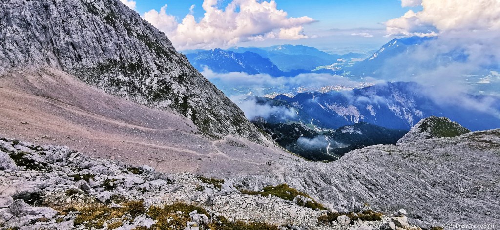 Le lendemain matin nous avons été louer un baudrier, un casque et un mousqueton à Bergsport WN Alpin (lien du site internet juste ici) à Breitenau pour la journée (19 EUR par personne) avant d’arriver à la station Alpspitzbahn. Pour démarrer la via ferrata depuis le Alpspitze, vous avez 2 options : soit vous montez à pied en quelques heures, soit vous prenez le funiculaire qui vous y amène en à peine 3 minutes. Sachez tout de même que le funiculaire est assez cher : 18 EUR l’aller simple ou 30 EUR l’aller-retour (sachez que si au final vous décidez de descendre en funiculaire et que vous aviez déjà un ticket aller, vous ne payez que 10 EUR supplémentaires pour le retour au lieu du prix plein) 🙂