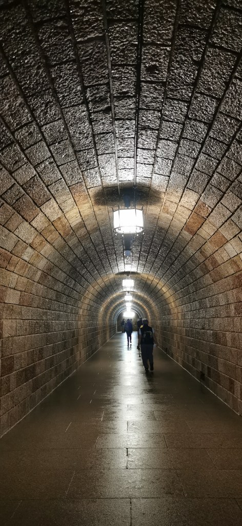 Nous arrivons donc devant l’entrée d’un long tunnel de 124 mètres construit en 1938. Au bout de ce tunnel se trouve un ascenseur qui conduit les touristes au sommet, 120 mètres plus haut. Nous avons décidé d’opter pour la montée à pied via le chemin à droite du tunnel, qui dure entre 15 et 20 minutes. Quitte à faire le premier arrêt en bus, autant utiliser nos jambes pour le sommet 😀 La vue à 360° est juste incroyable !