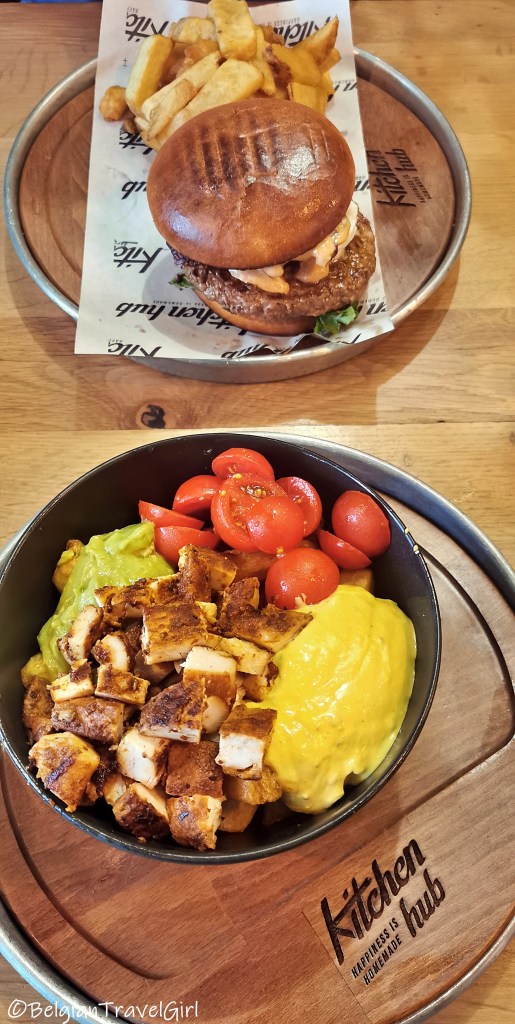 2. « Kitchen Hub » : Ce resto sur le pouce se trouve à Innsbruck dans le centre-ville. Nous en avions marre d’être dehors avec la pluie battante depuis plusieurs heures et nous nous y sommes réfugiés. Vous pouvez créer votre burger comme bon vous semble, et chaque plat est modifiable. Les serveurs sont vraiment super sympas et la déco était plutôt originale 🙂