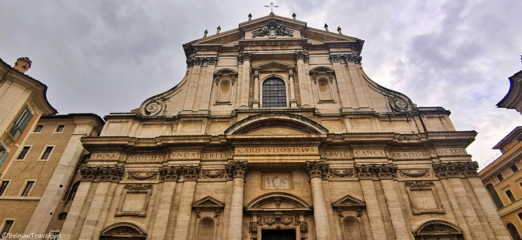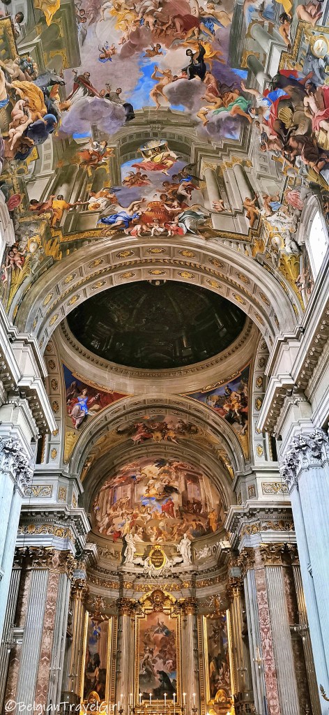 Je suis tombée par hasard sur cette cathédrale en allant visiter le Panthéon. Elle a été bâtie en 1626 pour célébrer la canonisation d’Ignace, le fondateur de l’ordre jésuite. C’est d’ailleurs la deuxième église jésuite qui a été construite à Rome.
