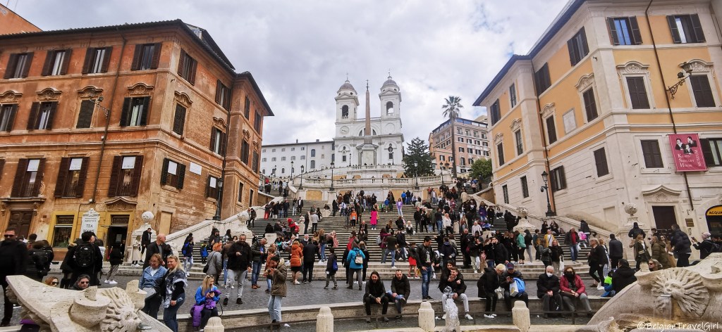 Pour ce dernier jour dans la capitale italienne, nous avons profité du soleil pour voir les derniers incontournables à pied. Nous sommes repassés une dernière fois devant la Fontaine de Trévi pour continuer vers la Piazza di Spagna (place d’Espagne) et l’escalier de la Trinité-des-Monts.