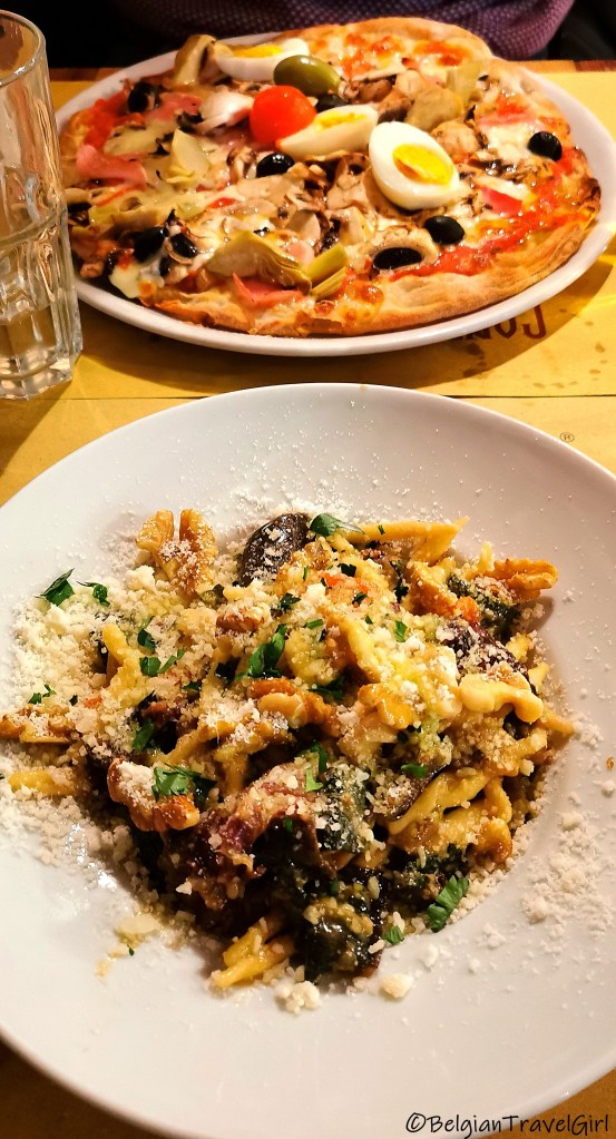 « Trattoria de Gli Amici »  : Comme expliqué plus haut, sans réservation le week-end, c’est très compliqué d’avoir une table dans les restaurants les plus prisés de la capitale. Nous allions vers un tout autre restaurant lorsqu’il s’est mis à pleuvoir comme on le voit rarement, en 1 minute seulement nous étions trempés et ne pouvions rester dans une file d’attente à ciel ouvert 🙂 Nous avons donc dû nous rabattre sur le seul restaurant qui avait une table pour nous dans les 5 minutes. Au final ça a été une très bonne surprise, des plats copieux et pas trop onéreux !