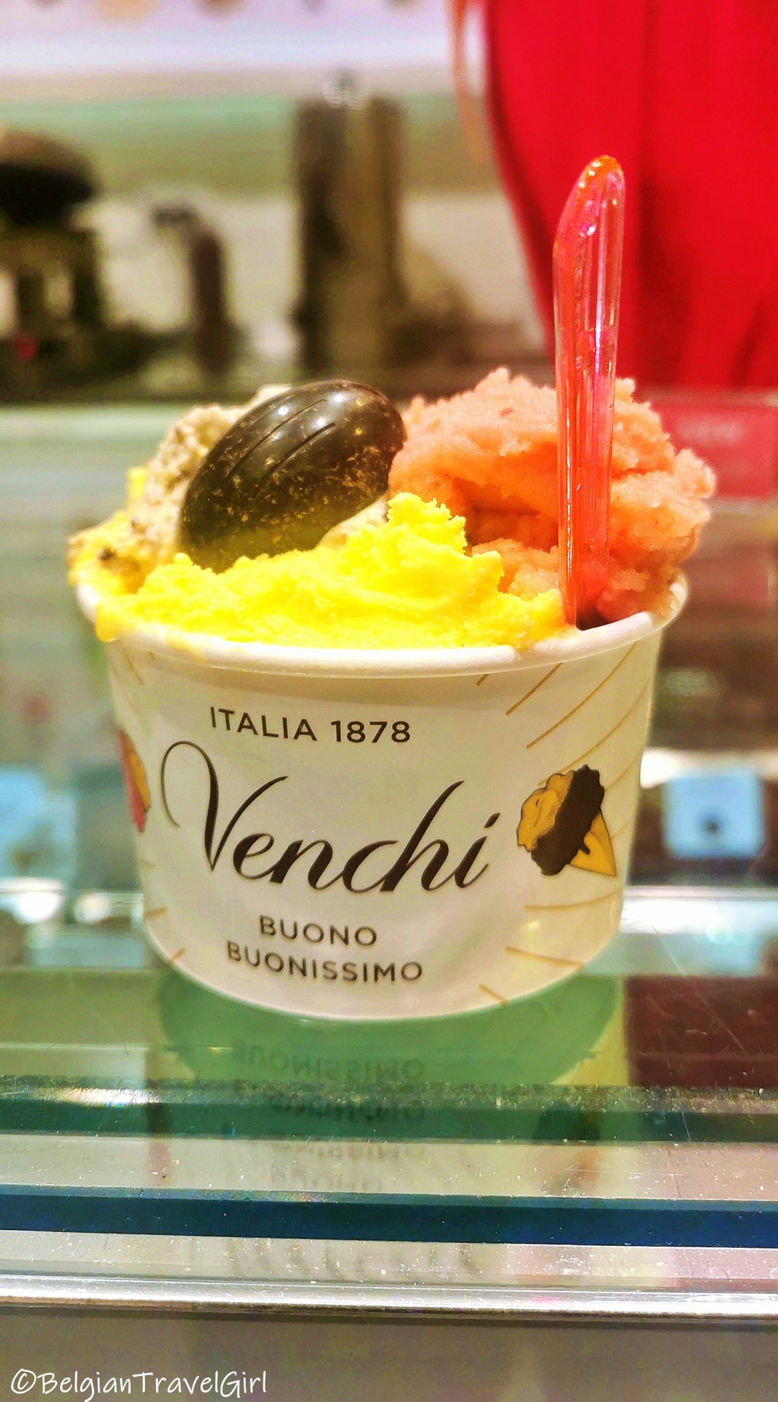 « Venchi »  : Ce glacier/chocolatier m’avait été recommandé car il parait que c’est le meilleur endroit que l’on trouve dans le centre pour manger une glace. J’ai trouvé qu’il y avait de nombreuses saveurs et que le petit chocolat sur le dessus était très très bon, mais c’est au niveau de l’accueil des clients que cela mérite une amélioration.