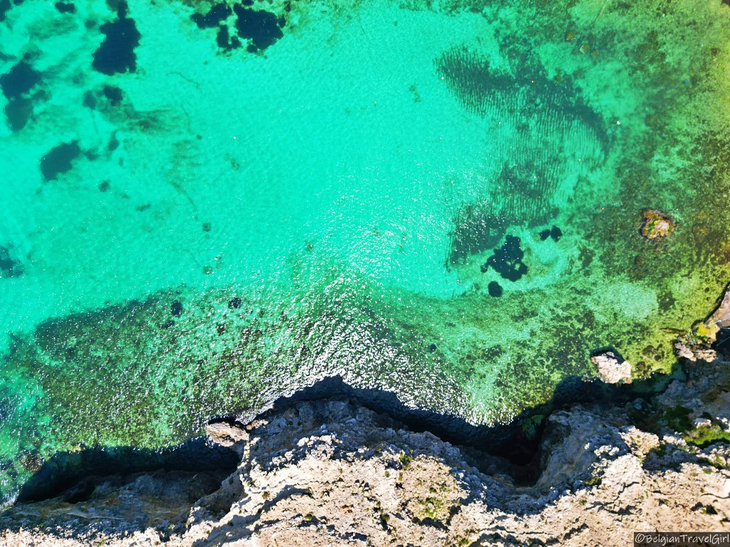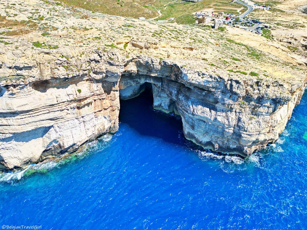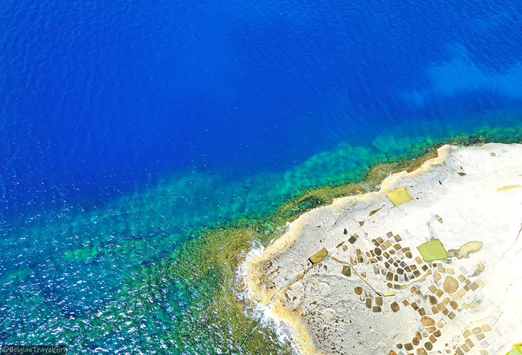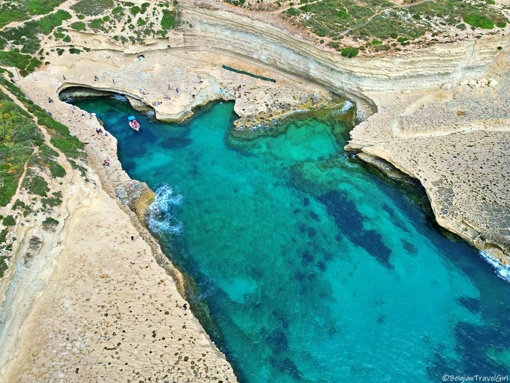 De retour sur Gozo, nous avons traversé l’île jusqu’au nord pour y voir un tout petit bout de mer à l’intérieur des terres. On dirait un magnifique petit lac qui est en fait relié à la mer par un tunnel qui mesure environ une centaine de mètres et passe sous la falaise.