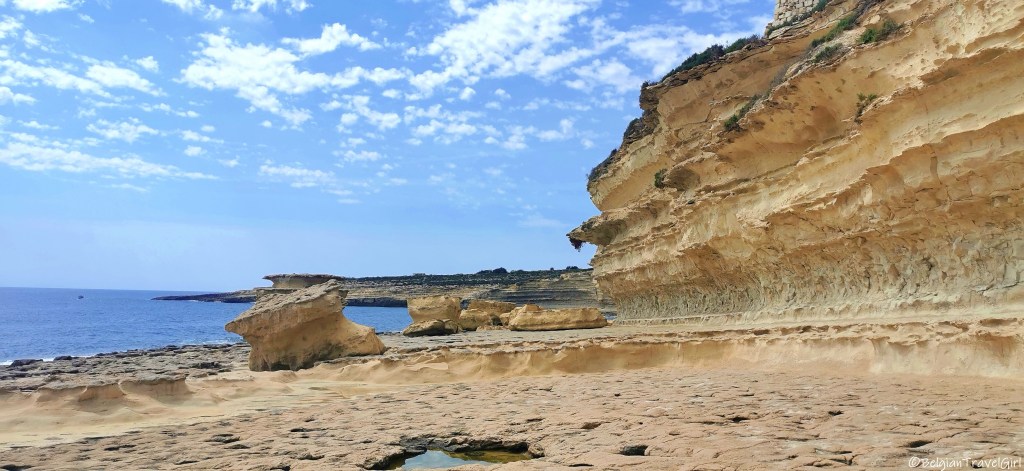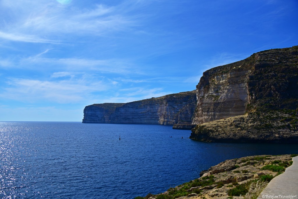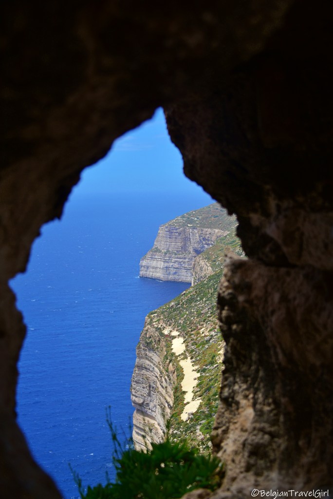 Nous nous sommes ensuite rendus non loin de là, à la baie de Dwejra. Cette réserve naturelle est un incontournable de Gozo si vous voulez admirer un panorama sur la mer et qui résulte de l’effondrement d’une caverne. Vous pouvez aussi nager dans les profondeurs du Blue Hole situé un peu plus au nord, le meilleur site de plongée de Gozo !
