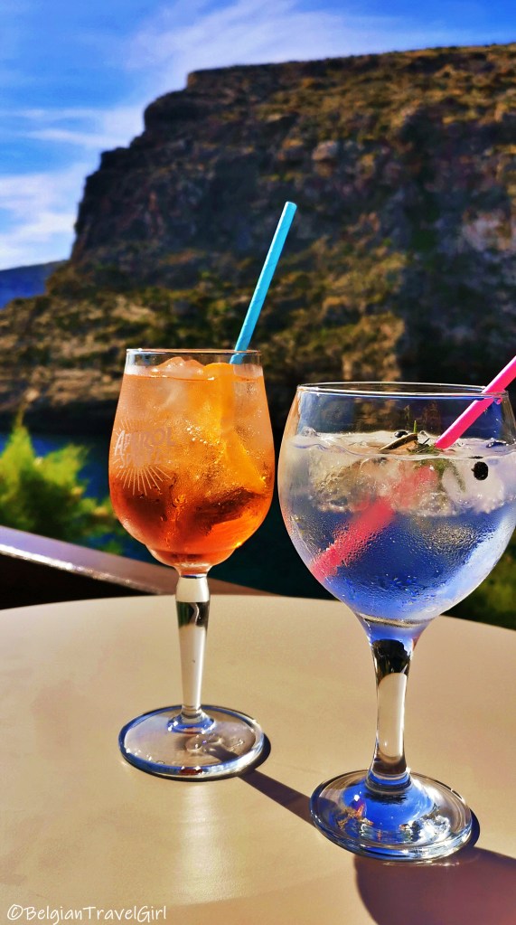 « Terrazzo-Restaurant & Beach Bar » : Belle découverte lors de notre petit arrêt à Xlendi. Le Terrazzo surplombe toute la baie et offre une vue incroyable ! Idéal pour un coucher de soleil 🙂 A noter pas mal de choix au niveau de la carte des gin !