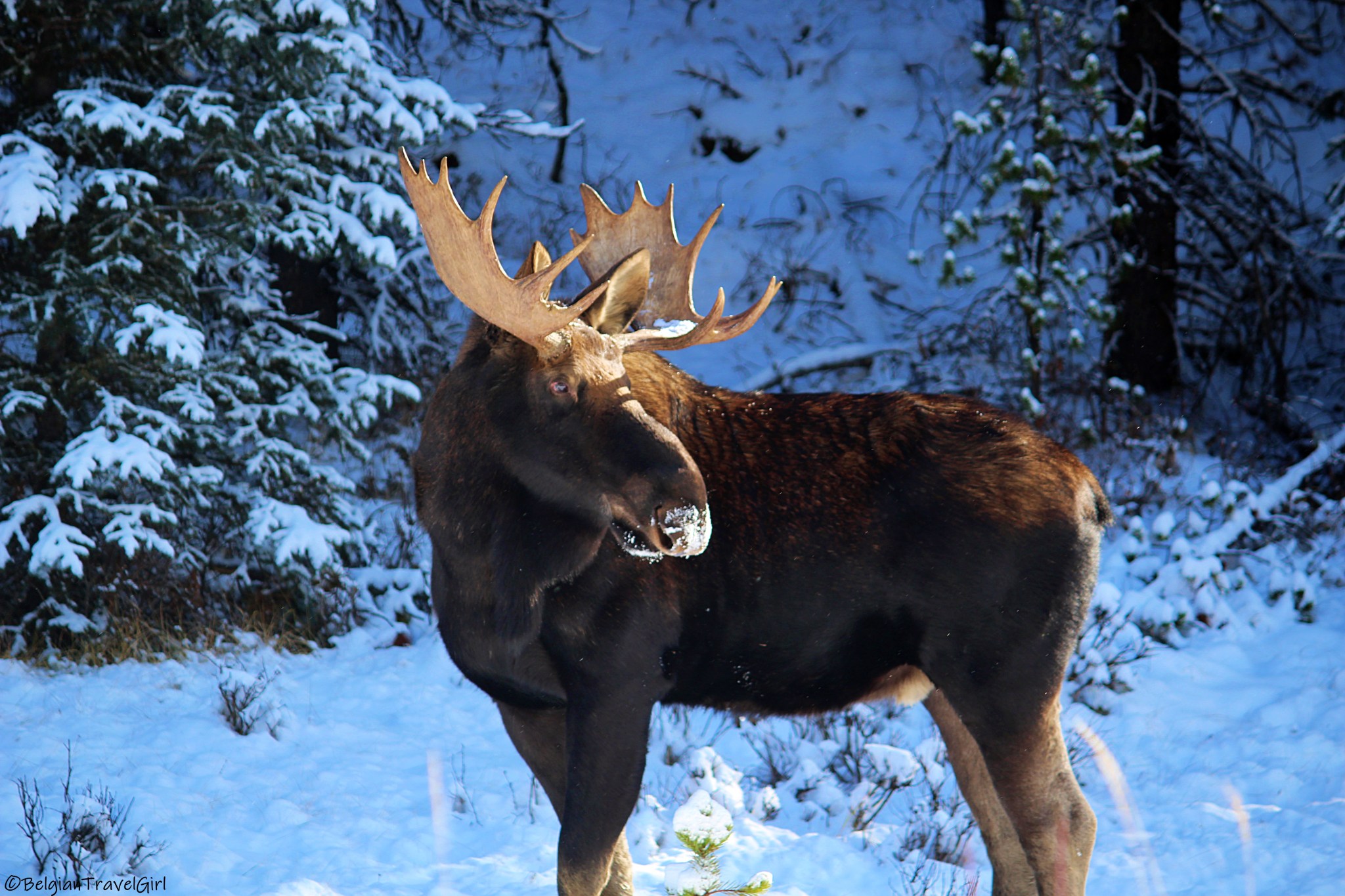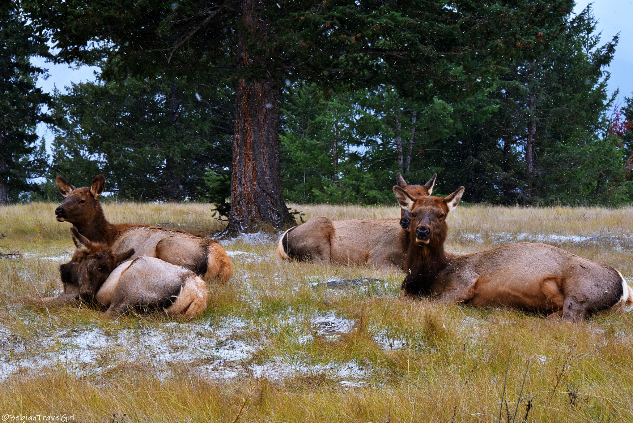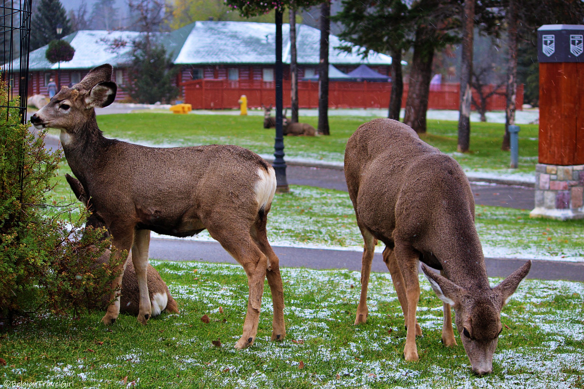 Comme il a commencé à neiger et que le ciel se couvrait, nous avons tenté d’apercevoir les grizzlis du côté de Beauvert Lake et de Annette Lake, juste à côté de Old Fort Point. Vous pouvez faire le tour du Beauvert Lake en 1h30 sans dénivelée en passant par un sentier longeant le Park Lodge Golf Club : c’est là qu’on a pu voir plein de wapitis et de chevreuils 🙂