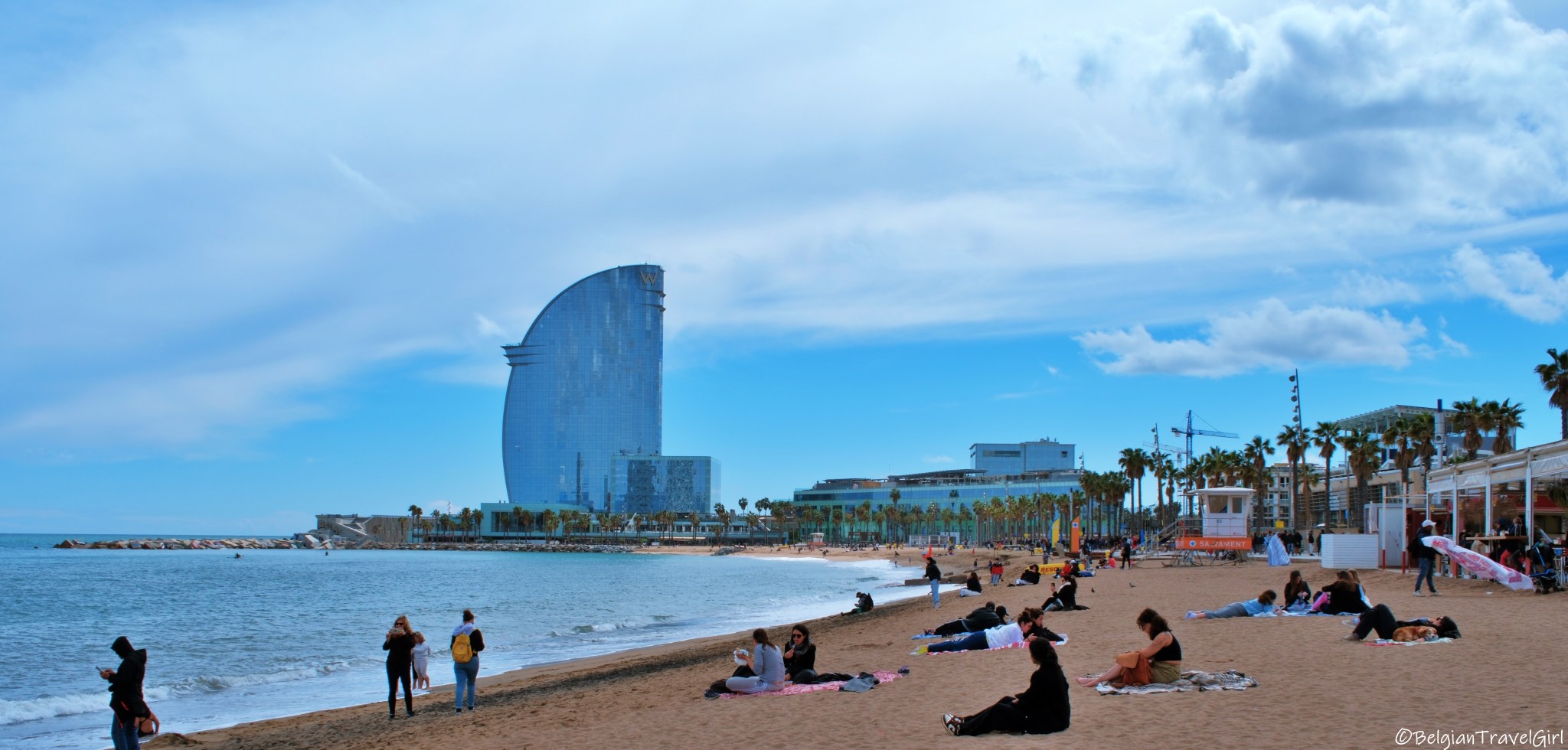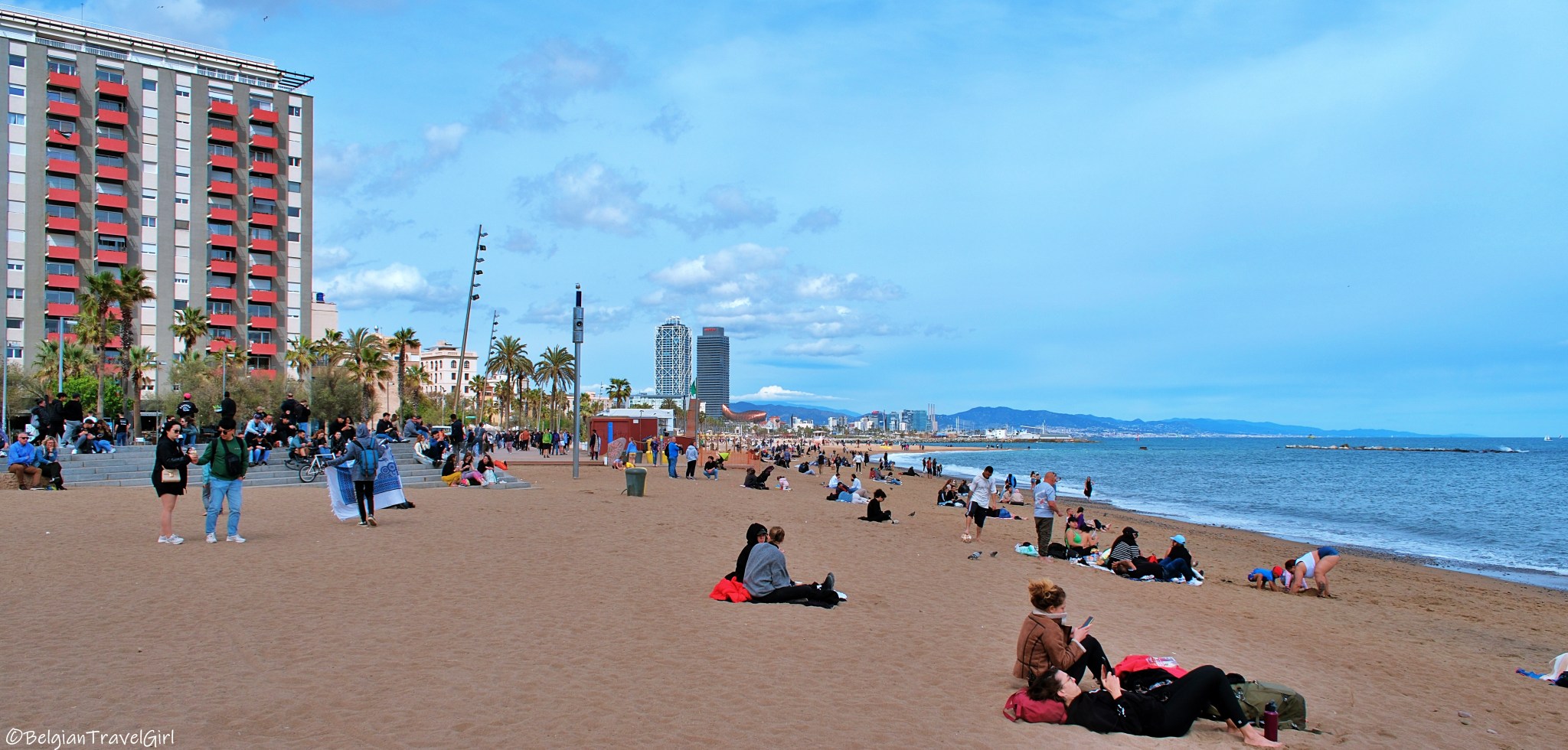 - La plage de Barcelone : passer du côté ville à la plage en quelques minutes, c’est pour moi LE gros avantage de la ville. Même si beaucoup de monde s’entasse sur le sable, rien ne vaut une belle vue sur la mer et les palmiers après une longue journée de visite !