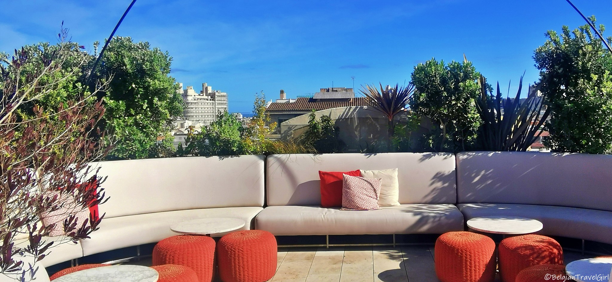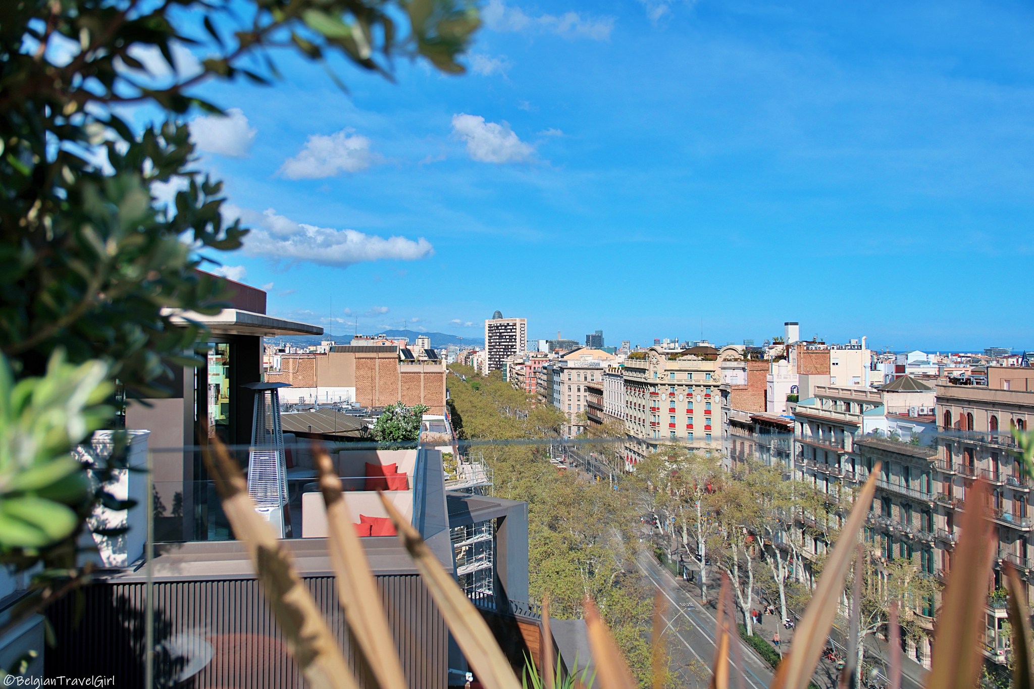 « Azimuth rooftop terrace and lounge » : Il vous suffit d’entrer dans l’hôtel de luxe, de traverser le hall pour ensuite être accueillis par une hôtesse nous amenant à l’ascenceur. Au 8ème étage, nous avons découvert cette petite pépite avec vue sur la Sagrada Familia. Nous n’étions pas au courant qu’ils démarraient leur saison ce jour-là et sommes arrivés quelques minutes après l’ouverture.. Autant vous dire que nous étions super contents de pouvoir choisir l’endroit où nous voulions nous asseoir :p Nous avons simplement bu un verre avant de repartir mais il est également possible de manger de très bons plats.
