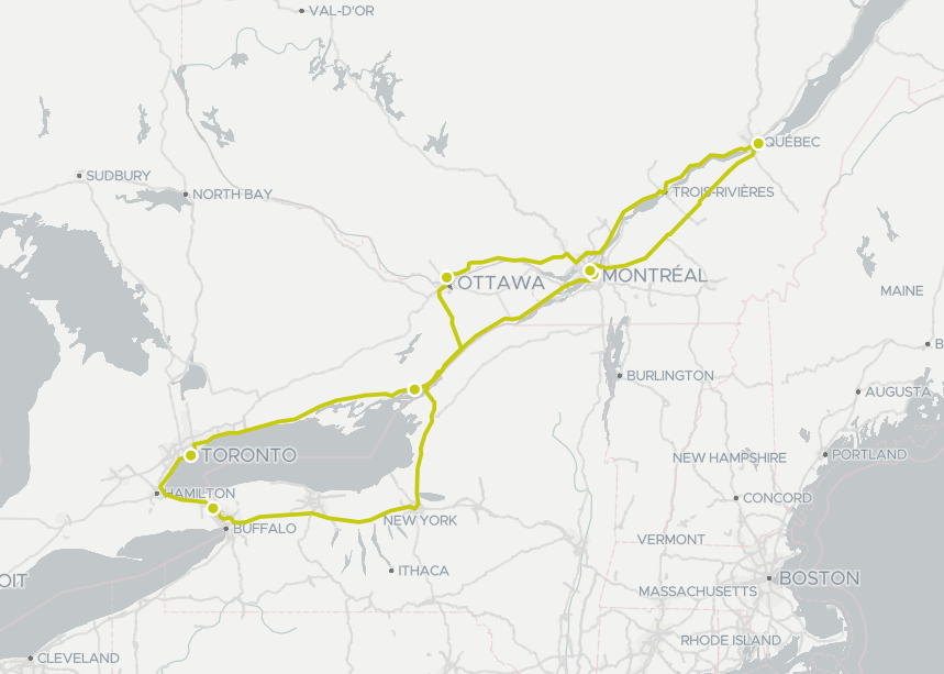 ITINÉRAIRE ENTRE LE QUÉBEC ET L’ONTARIO SUR 14 JOURS :